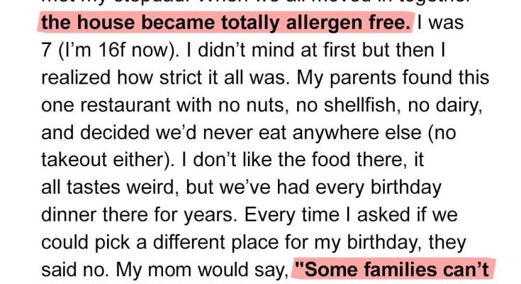 I’ve never told anyone this. Not really. Not the whole truth of it. But it eats at me, every single day, gnawing at the edges of my peace. For nine years, my life, my plate, my entire relationship with food was dictated by a lie. A cruel, calculated lie that stole my childhood joy and left me with a bitterness that still burns.For nine long years, from the moment my parent married my step-parent, dinner became a beige landscape of blandness. Chicken boiled, not roasted. Pasta plain, no sauce. Vegetables steamed until they wept flavorless water. No spices, no garlic, no onion, no tomatoes, no nuts, no dairy, no gluten, no anything remotely delicious. Why?