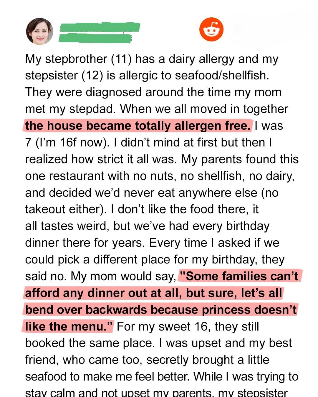 My breath hitched. My ears rang. I leaned closer to the door, cold dread spreading through my veins. “Oh, the little one does have a slight dairy sensitivity, true,” my step-parent continued, their voice dripping with casual dismissal. “But nothing that would stop them from having a normal slice of pizza once in a while. The other one? Perfectly fine. Always has been. No allergies at all. But it’s brilliant, isn’t it? Gets everyone on board. Especially my partner. Keeps the peace, they say. And I get to eat what I actually like without any fuss.”