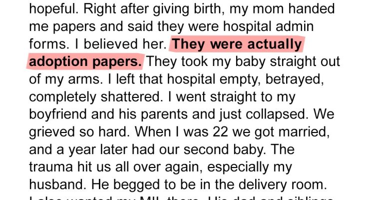 “We wanted to see you before I go,” she said. “You deserve to know that what we did… it was the right thing. You were children. You couldn’t raise a baby.”