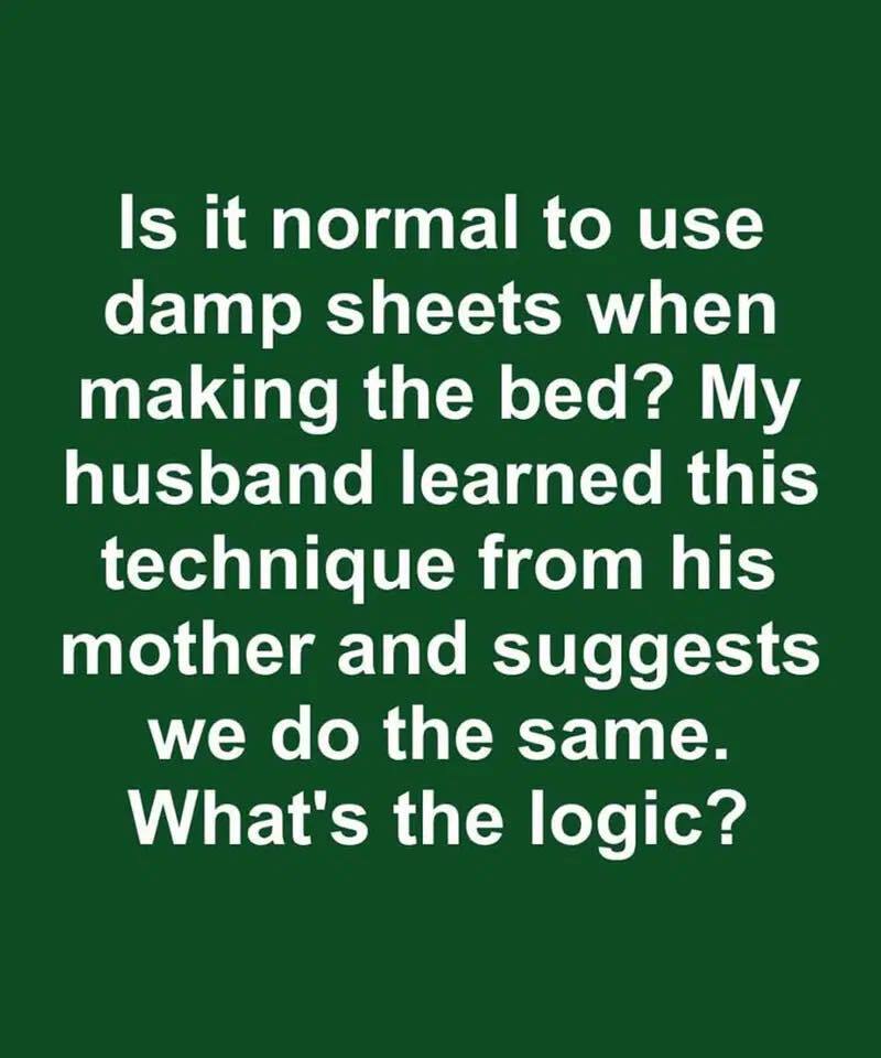 Is it normal to use damp sheets when making the bed?My husband learned this technique from his mother and suggests we do the same.What’s the logic?That’s what I posted anonymously in a home tips forum one quiet Tuesday morning, never thinking it would be the spark that set my whole life on fire. My name’s Mirabel, and at that point, I’d been married to Alaric for just under five years.
