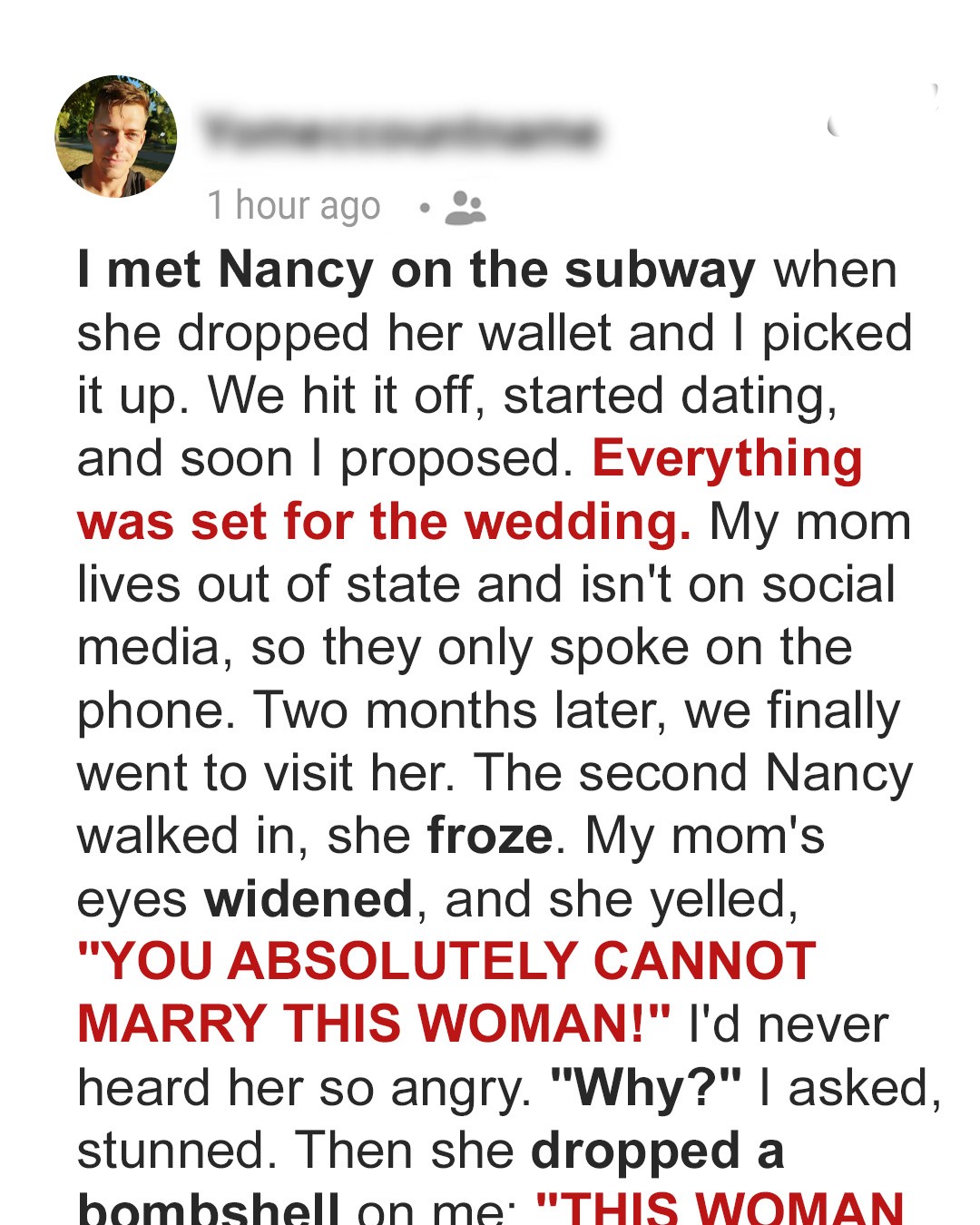 All I wanted was for my mother to meet the woman I loved. But the moment my fiancée walked in, my mom froze like someone had stabbed her with memory. She screamed I wasn’t allowed to marry my girlfriend and revealed a truth that tore through more than just my heart.Ever believe in love at first sight? I never did… until Nancy dropped her wallet right at my feet on the downtown metro. I’m Edward, Eddie to everyone who knows me. I’m 30, a graphic designer by day, an aspiring artist by night, and apparently terrible at reading the signs the universe throws at me.