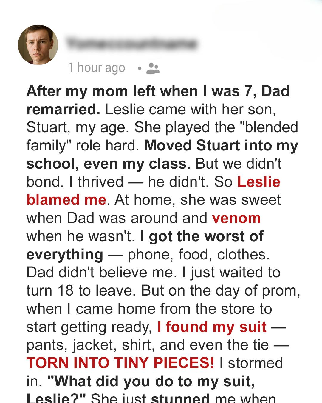 She Tore My Prom Suit Apart for Her Son’s Benefit — But Her Cruel Plan Backfired Spectacularly