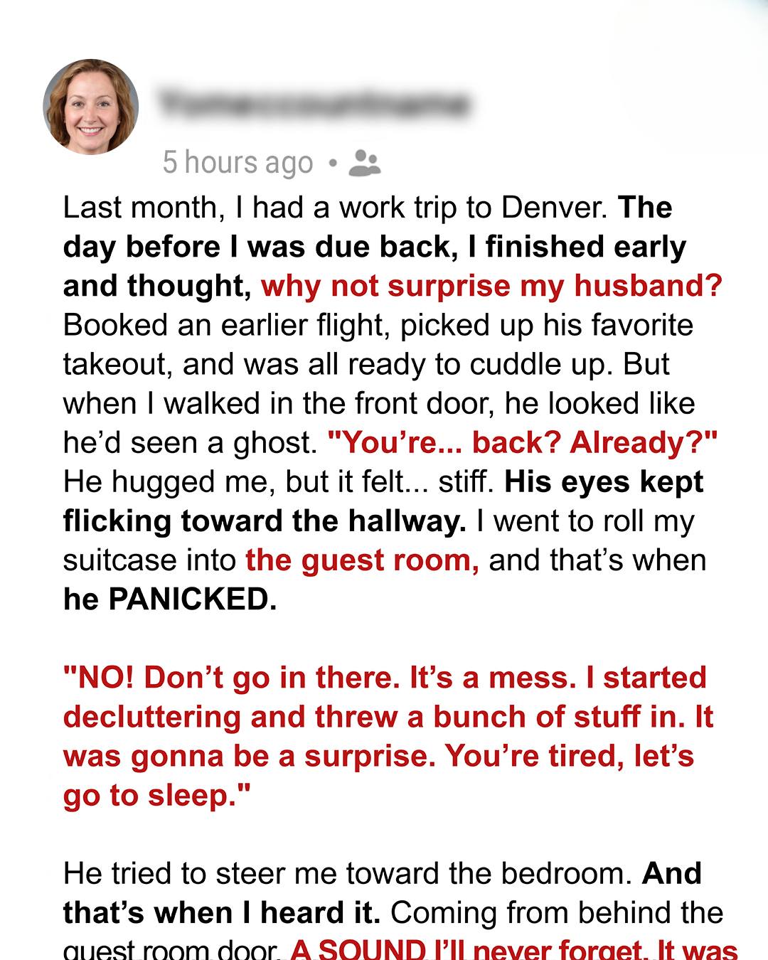 I didn’t worry about it then. Why would I? We were building a life. He had a few boxes. Totally normal. I focused on unpacking the kitchen, setting up our bedroom, making the living room feel like home. But the guest room remained untouched, its door always firmly shut.
