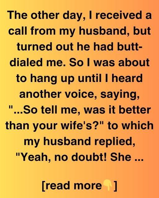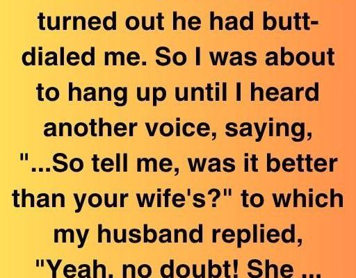 My hubby butt-dialed me the other day. Just as I was about to hang up, another voice said, “… Was it better than your wife’s? My spouse said, “Yes, definitely!” She…”