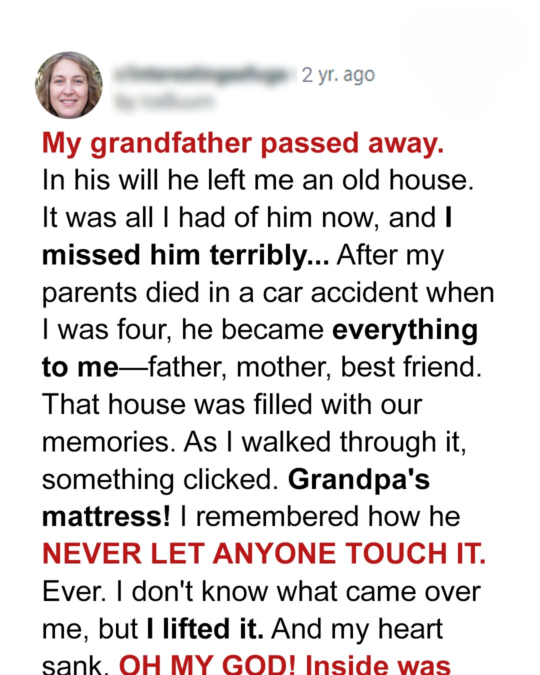 Inside her late grandfather’s mattress, Brooke uncovers a stash that shatters everything she thought she knew about her parents’ death. But this hidden secret doesn’t just affect her; it threatens to destroy the entire town.Brooke stood in the doorway of her grandfather’s bedroom, her nose prickling as memories flooded her mind. Her breath came in unevenly as she remembered all the times she had visited him, almost hearing Granddad Charles’s hearty laugh echoing through the halls.“I can’t believe he’s truly gone,” she whispered, running her hand along the old oak dresser.