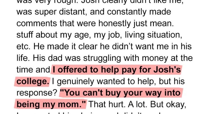 That’s when I saw my chance, not to buy Josh’s love, but to give him something I never had: a real shot at a bright future.