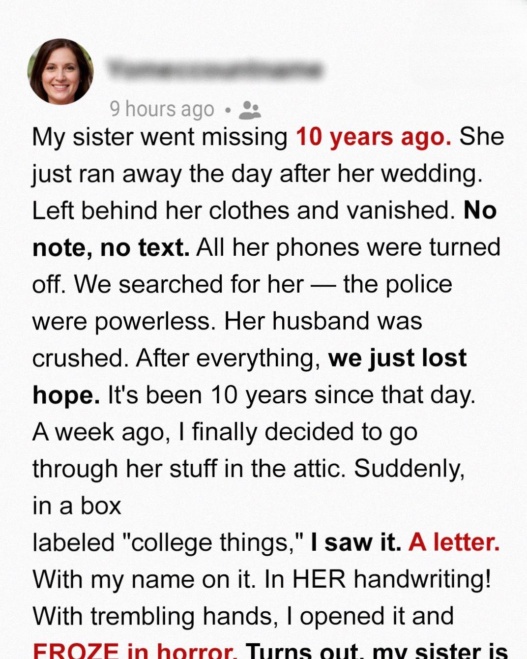 My Sister Disappeared Without a Trace—Ten Years Later, the Truth Arrived in an Envelope
