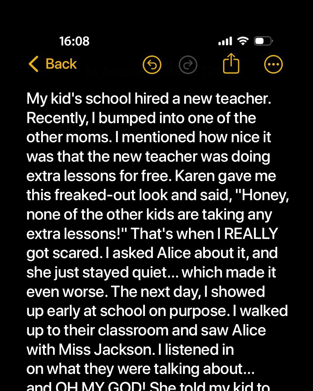 But soon, something strange happened. One day, I received a text message from Miss Jackson.
