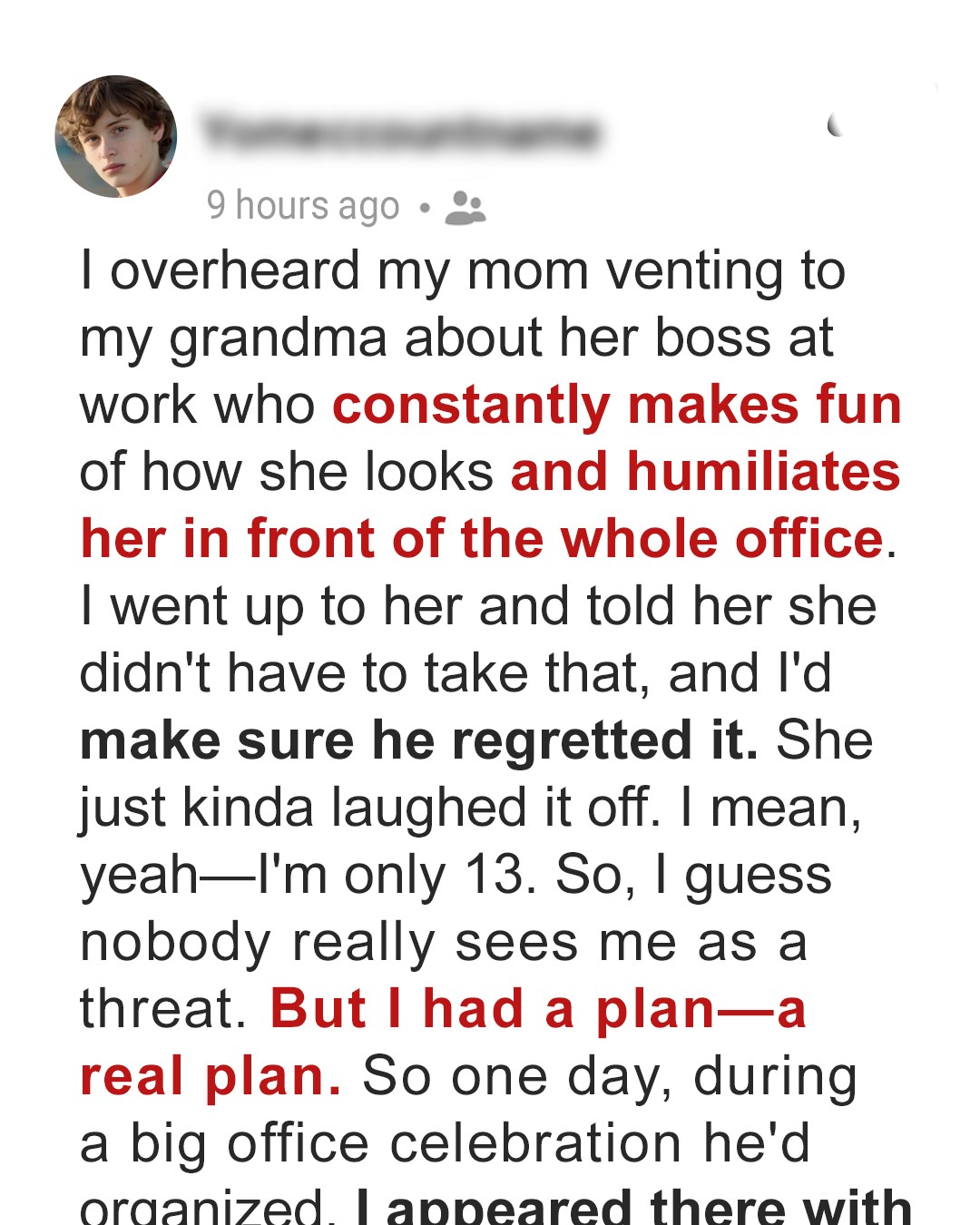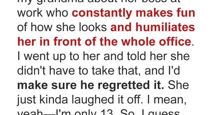 “No,” I agreed, still looking at Richard. “What’s not appropriate is how he speaks to you. That’s the woman who holds your company together,” I continued, addressing her boss directly. “The one who never gives up. She’s MY mom. And she deserves more than your jokes.”