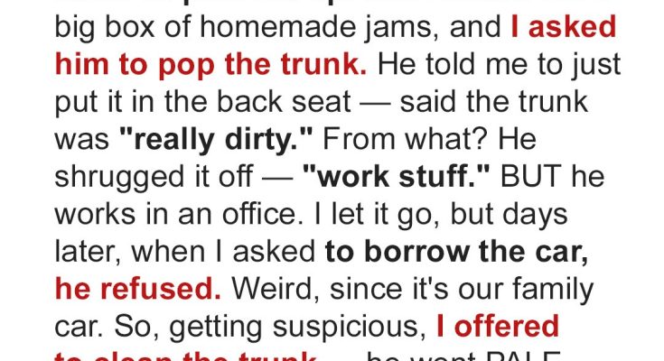 When Celia’s husband refuses to let her open the trunk of their shared car, she senses that something isn’t right. What begins as mild suspicion quickly unravels into a late-night discovery she can’t forget. But the truth behind the locked trunk isn’t at all what she expected… and it changes everything.There are certain moments in a marriage when the ground doesn’t crack beneath you, but you swear it shifts. Quietly. Just enough for you to notice.It was a Tuesday. Ordinary in every way possible. Milan had soccer practice, Madison wouldn’t eat her sandwich unless I cut it into a heart, and I still had two deadlines by 15:30.