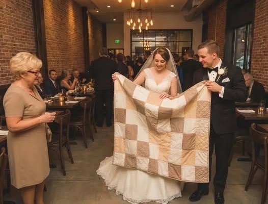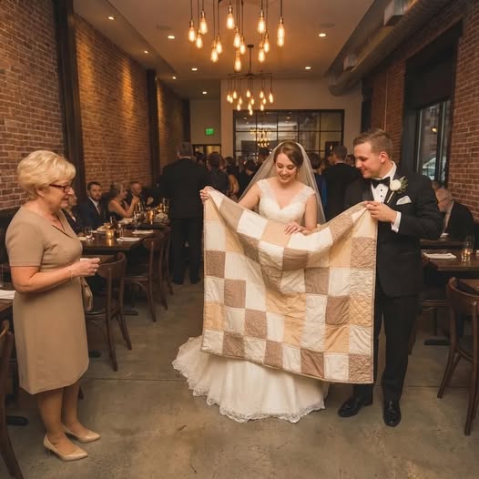 About what it means that a handmade quilt — uneven seams, trembling stitches, lace from a sixty-year-old wedding veil — turned out to be the truest thing at a four-hundred-person celebration that cost more money than I’ll see in the rest of my life. I’ve thought about my husband, who built our house nail by nail. About my son, who isn’t here.