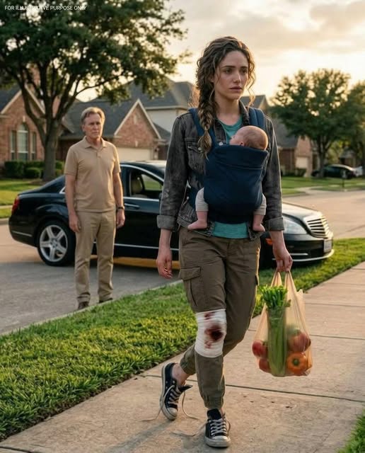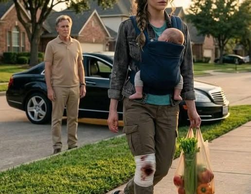My dad saw me limping down the street, holding my baby and grocery bags, and asked where my car was. When I quietly explained that my partner’s mother had taken it and expected gratitude, his expression changed instantly.