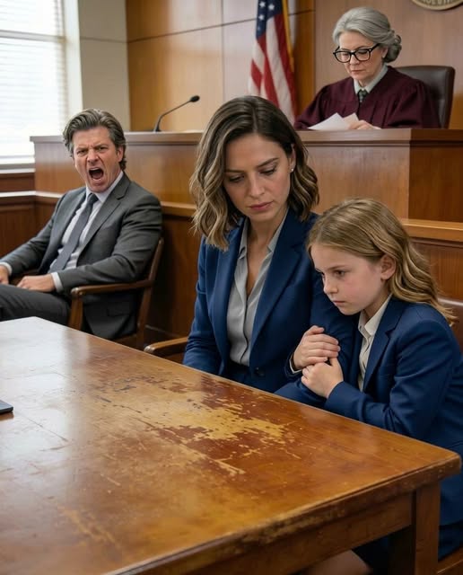 My daughter sat so close her knee pressed against mine. Her hand—small, warm, shaking—gripped the sleeve of my blazer as if cloth could become a bridge over a ravine. She had been incredibly brave all morning. Quiet. Too quiet for a child who should have been thinking about cartoons and snacks, not custody language and courtroom procedure. Every few minutes she tugged at my sleeve, the same silent question each time: Are you here? Are we okay?