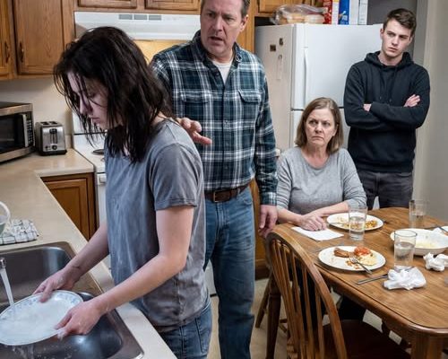 My daughter continued washing dishes.
