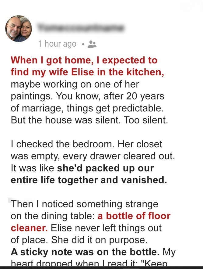 My Wife Ended Our 20-Year Marriage in a Single Night — All She Left Behind Was a Bottle of Floor Cleaner and a Note
