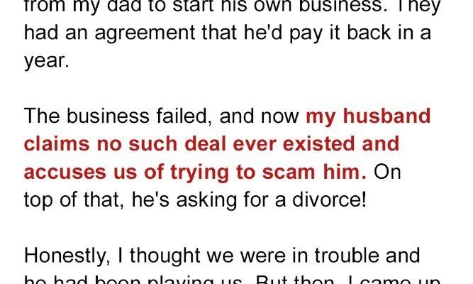 My husband borrowed $30K from my father for his business, but now he’s denying that the deal ever took place.
