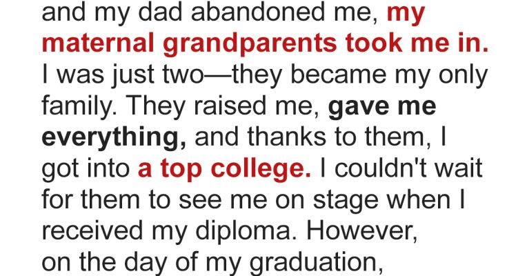 My name is Sarah, and my story began with a tragedy. When I was two, my mom died in a car accident, and my dad left us. My grandparents took me in. They became my whole world. They loved and supported me through everything. Thanks to them, I just graduated from high school and got into a great college.Graduation day was supposed to be perfect. I couldn’t wait for my grandparents to see me get my diploma. I was so excited.