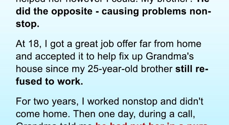 Then my brother stepped in. He’s always been… ambitious. Practical. A man of logic, he’d call it. I always called it cold. He started talking about Grandma’s declining health, her forgetfulness, the dangers of her living alone. I fought him. I visited her daily, made sure she ate, helped her with bills. I swore I could manage. But he had the power of attorney paperwork, signed years ago, when Grandma was sharper, probably just trying to make things easier for her future self. He used it.