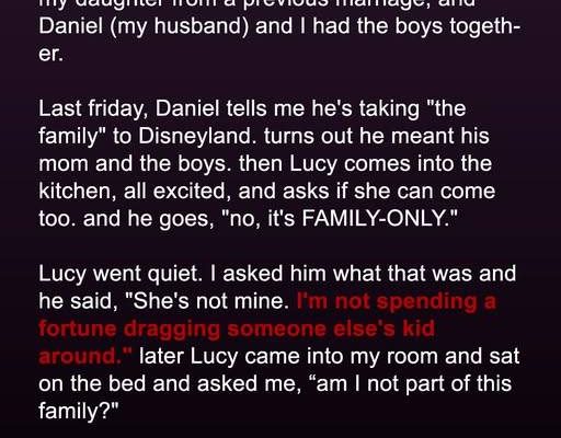 And my daughter. The child I cherished, the child I raised from infancy, the child I thought was ours together, born to us in a beautiful, shared journey. The child he had left behind on his “family-only” trip with “his sons.”
