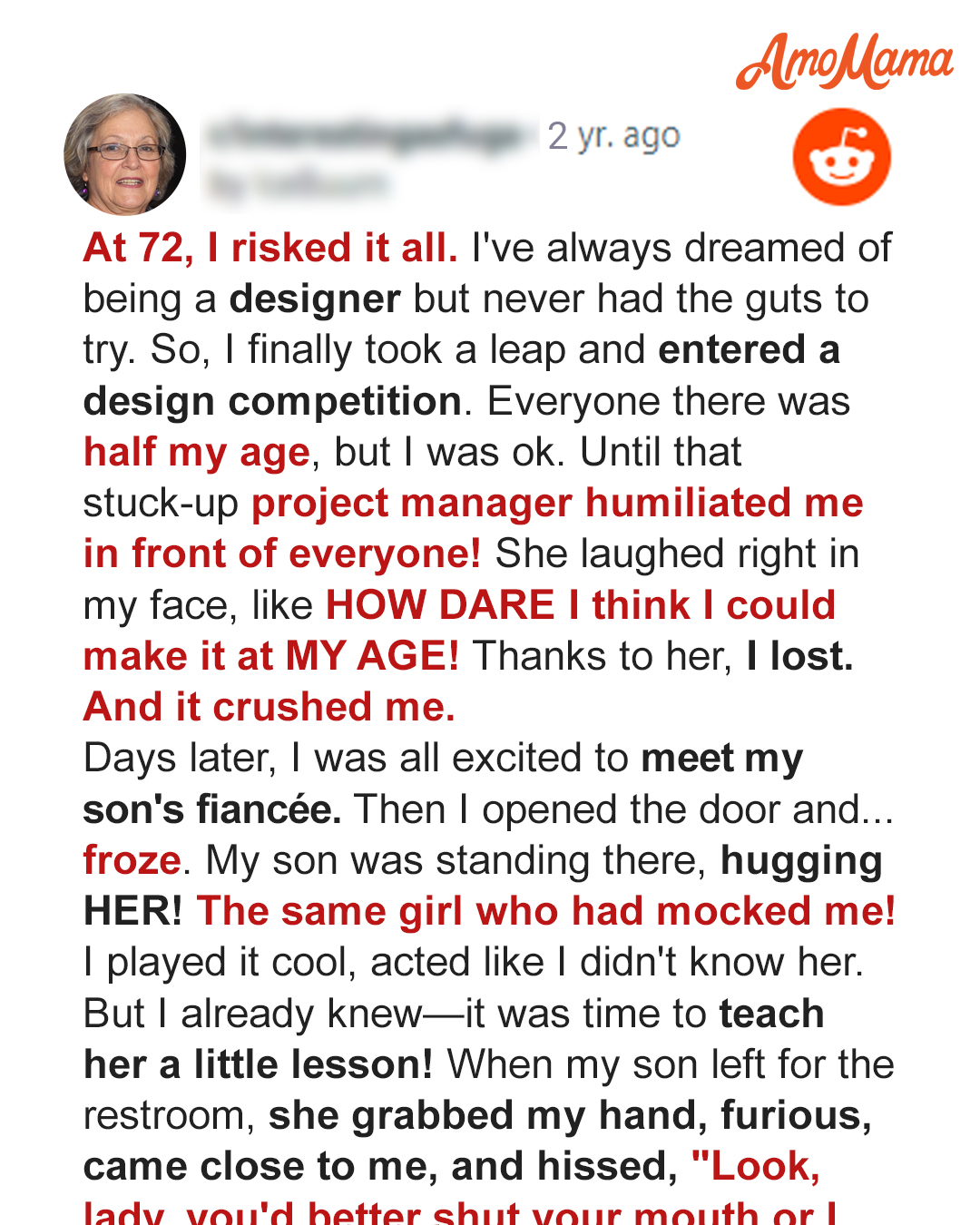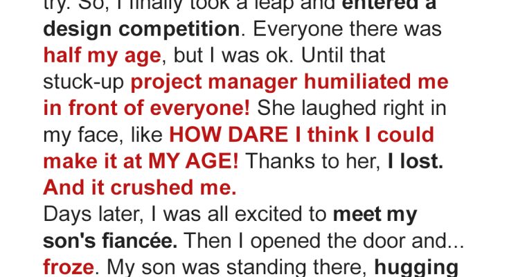 At a design competition, I was mocked for my age and humiliated in front of everyone. Less than 24 hours later, the same woman who belittled me walked into my home—as my son’s fiancée.I had always believed that my time had passed. The design had been my dream, but life quickly set its priorities: first, my husband, then my child, the house, and the responsibilities.And finally, at sixty, I suddenly felt I could still create.I received an email confirming that my project had made it to the finals of a prestigious design competition. I cried. Out of joy. Out of fear. Out of everything that meant.