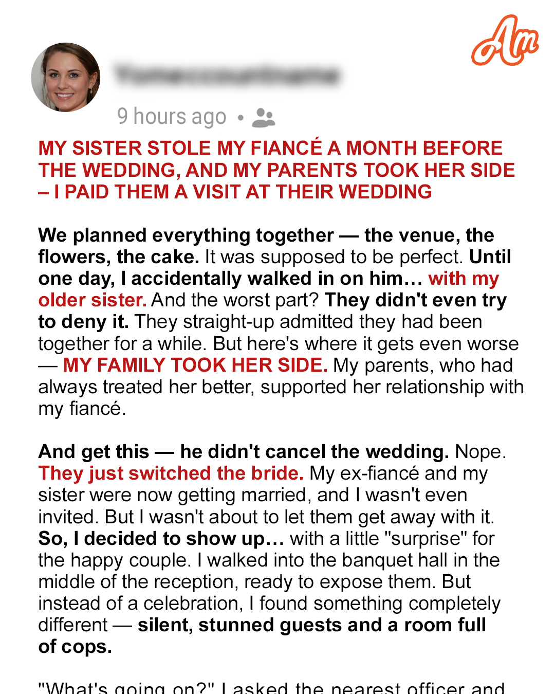 What was supposed to be the happiest day of my life turned into one that I’ll never forget. I went from being the bride-to-be to the uninvited wedding guest who crashed the event because she wanted revenge. But karma arrived at the venue before I could.He made me feel like the luckiest woman in the world.When I met Ethan two years ago, I was convinced I had found my forever. He was charming, witty, and knew exactly what to say to make me feel special! Seven months ago, when he proposed, I felt like the happiest woman alive—but I didn’t know I’d never become his wife.