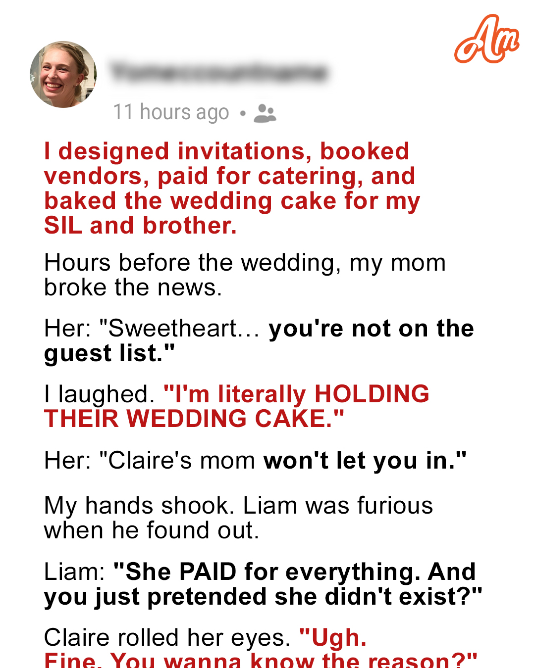 I Helped Plan My SIL’s Wedding, Baked the Cake, Paid for the Catering – Then Found Out on the Wedding Day I Wasn’t Invited