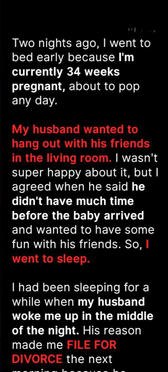 Thirty-four weeks pregnant and fast asleep, I was jolted awake by my husband’s urgent cries in the dead of night. His reason shattered my world, and by morning, I had no choice but to file for divorce.As I await the arrival of my baby, my heart is heavy with sorrow. My due date is just two weeks away, and I’m torn between welcoming my little bundle of joy into the world and divorcing my husband. My name is Mary, and this is the story of how one fateful night changed everything…