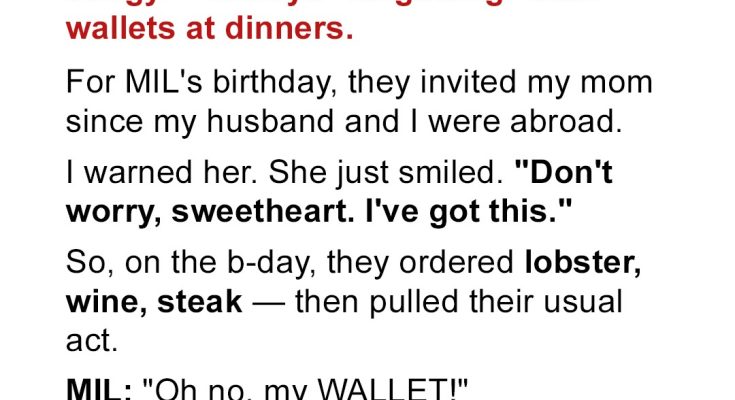 For years, my wealthy in-laws pulled the same trick: “forgetting” their wallets at dinner to avoid paying. When they invited my mom to a fancy restaurant, thinking she’d fall for it too, they had no idea she was ready. This time, their scam backfired… spectacularly.I was raised to believe family stood for something — you know, loyalty, honesty, having each other’s backs.Growing up, my parents taught me that a person’s character wasn’t measured by what they had, but by what they gave.We weren’t rich by any stretch, but we never thought twice about helping others or paying our fair share.Then I married my husband, and boy, did I get a reality check.