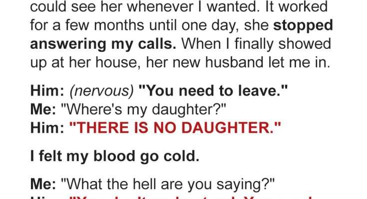 I trusted my ex-wife when she begged for full custody, promising I could see our daughter anytime. But when she started ignoring my calls, I drove to her house for answers only for her new husband to open the door, look me in the eye, and whisper, “There is no daughter.”I loved my wife.We met young, married fast, and within a year, we had a baby girl. She was perfect—tiny fingers, big brown eyes, and a giggle that could light up the darkest days. I remember holding her in the hospital, promising I’d always be there for her.Then, everything fell apart.One night, my wife sat me down at the kitchen table. Her eyes were red, but her voice was steady.