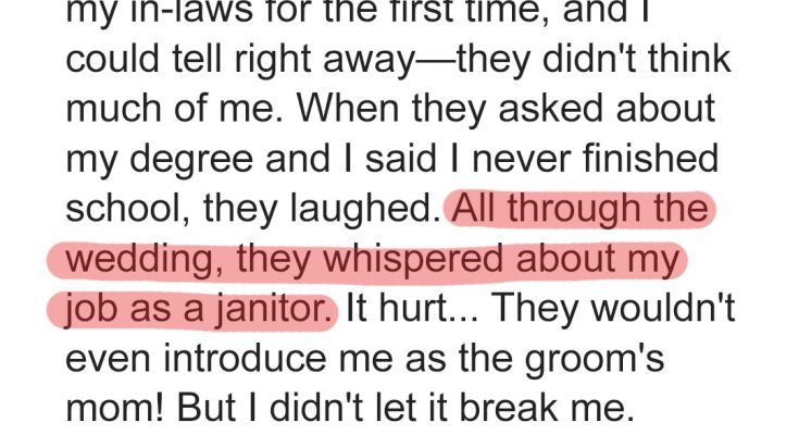 “Well, if we hadn’t worked hard, then we couldn’t have given Linda all of this,” Elizabeth replied rudely. Hugh and Elizabeth had VIP guests, including well-known businessmen from around the city. When asked who Maria was, they seemed embarrassed to reveal that she was the groom’s mother.