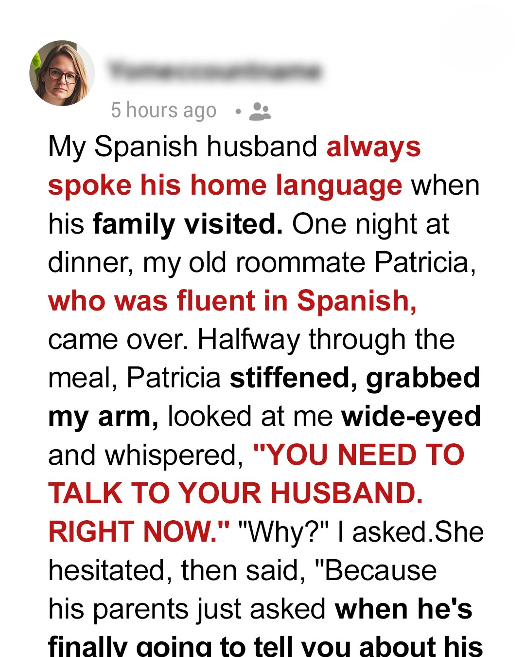 When my Spanish husband spoke to his parents, I never questioned the language barrier — until my friend, fluent in Spanish, joined us for dinner. Halfway through the meal, she grabbed my arm, eyes wide with horror. “You need to talk to your husband. Right now.”The scent of freshly brewed espresso and warm churros filled the air as I sat in a quaint café, journaling my thoughts about Barcelona.A deep, velvety voice interrupted my scribbling. “Excuse me, but you look like someone who enjoys good conversation.”I looked up to find a man with dark, expressive eyes and an easy smile standing beside my table. His Spanish accent made every word sound like poetry.I tucked a strand of hair behind my ear, unable to keep from smiling back. “And what does someone who enjoys good conversation look like?”