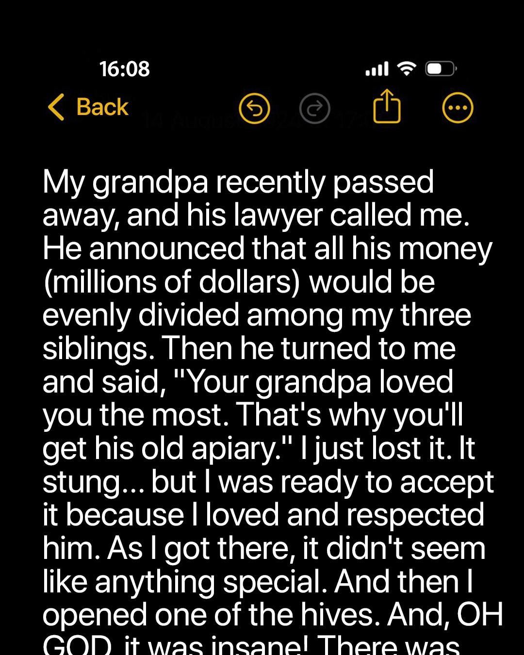 I Was Upset That My Grandfather Only Left Me an Old Apiary until I Looked into the Beehives — Story of the Day