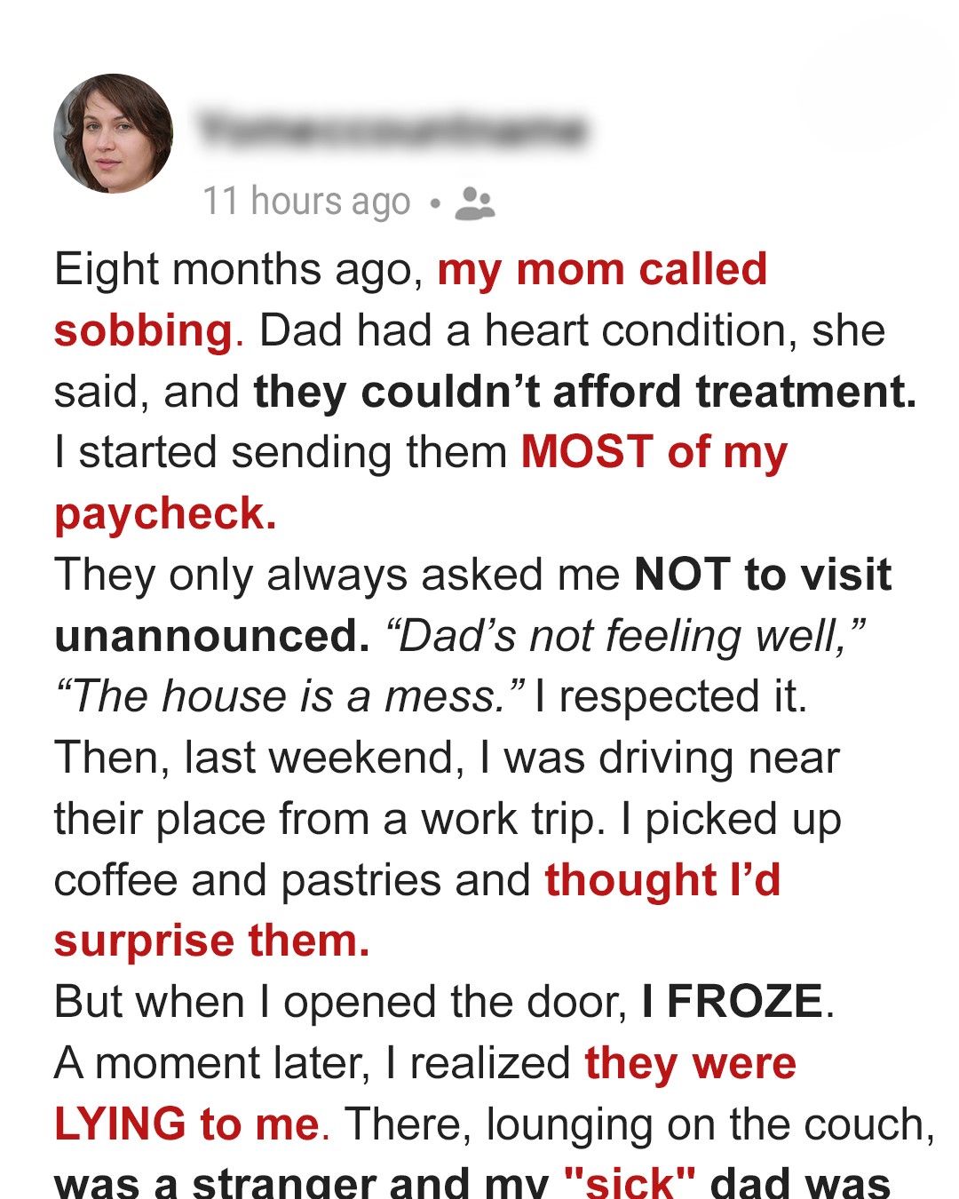 They spun the lie about Dad’s heart condition. They stitched it together with Mom’s tears and Dad’s sighs. They wrapped it in guilt, sold it to me with trembling voices and carefully cropped video calls.