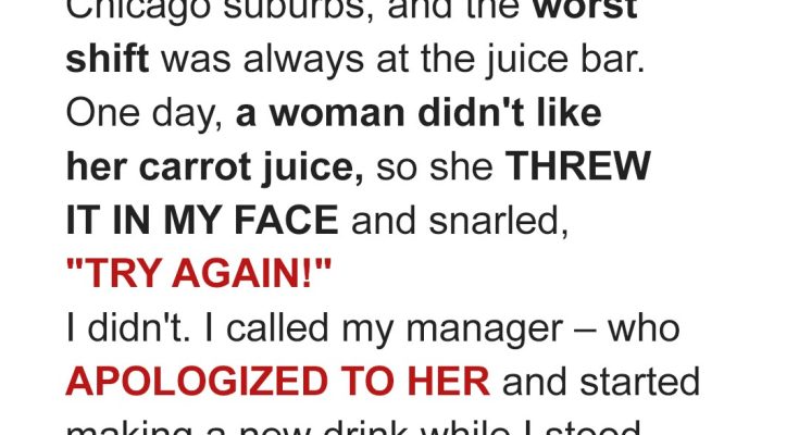 When an entitled customer humiliated me and hurled her drink at my face in front of everyone, she thought I’d take it lying down. What happened next was a lesson in why one should never underestimate someone in an apron.The moment I stepped into the health food store that morning, the scent of fresh produce and herbal teas hit me like a wave. I breathed it in, savoring the familiar aroma that had become a part of my daily routine over the past year. As I tied my apron around my waist, I couldn’t shake the feeling that today was going to be different somehow…“Hey, Grace! Ready for another exciting day of juice-making?” My coworker, Ally, called out from behind the counter.