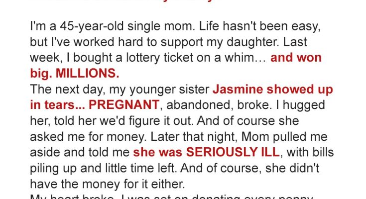 The same day I won the lottery, my sister showed up crying, and my mom landed in the hospital. By dinner, I realized none of it was a coincidence—and someone was playing me.I lived a simple life. I woke up at six, packed lunches, dropped my daughter off at school, worked all day, came home, cooked dinner, checked homework, and slept. Repeated.No surprises, no drama. Just steady, honest days. My daughter was my whole world. Every choice I made was for her.