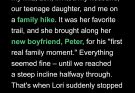 To six-year-old Sam, it sounded like his mother had simply gone on a trip to heaven, so he nodded his head and asked when she would be back. At that, his dad burst into tears and fled the room.