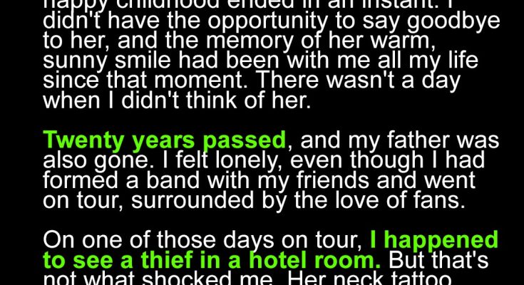 Little Aaron was heartbroken and missed his mother terribly after he was told she had passed away in a car crash. But years later, he recognized a woman’s tattoo when he stopped her from robbing a hotel guest miles away from his hometown. “OMG! Mom? Is that really you?” he asked, unable to believe she was standing alive before his eyes.Lisa applied another coat of lipstick and pressed her lips together, admiring herself in the compact mirror. She looked perfect enough to lure her next target.Stuffing her things in her purse, Lisa returned to the bar counter, where she had met 42-year-old Henry not long ago.“I hate noisy places, you know…” she said, seductively running her fingers along his shoulder. “We should find a quieter place…for us, don’t you think?”