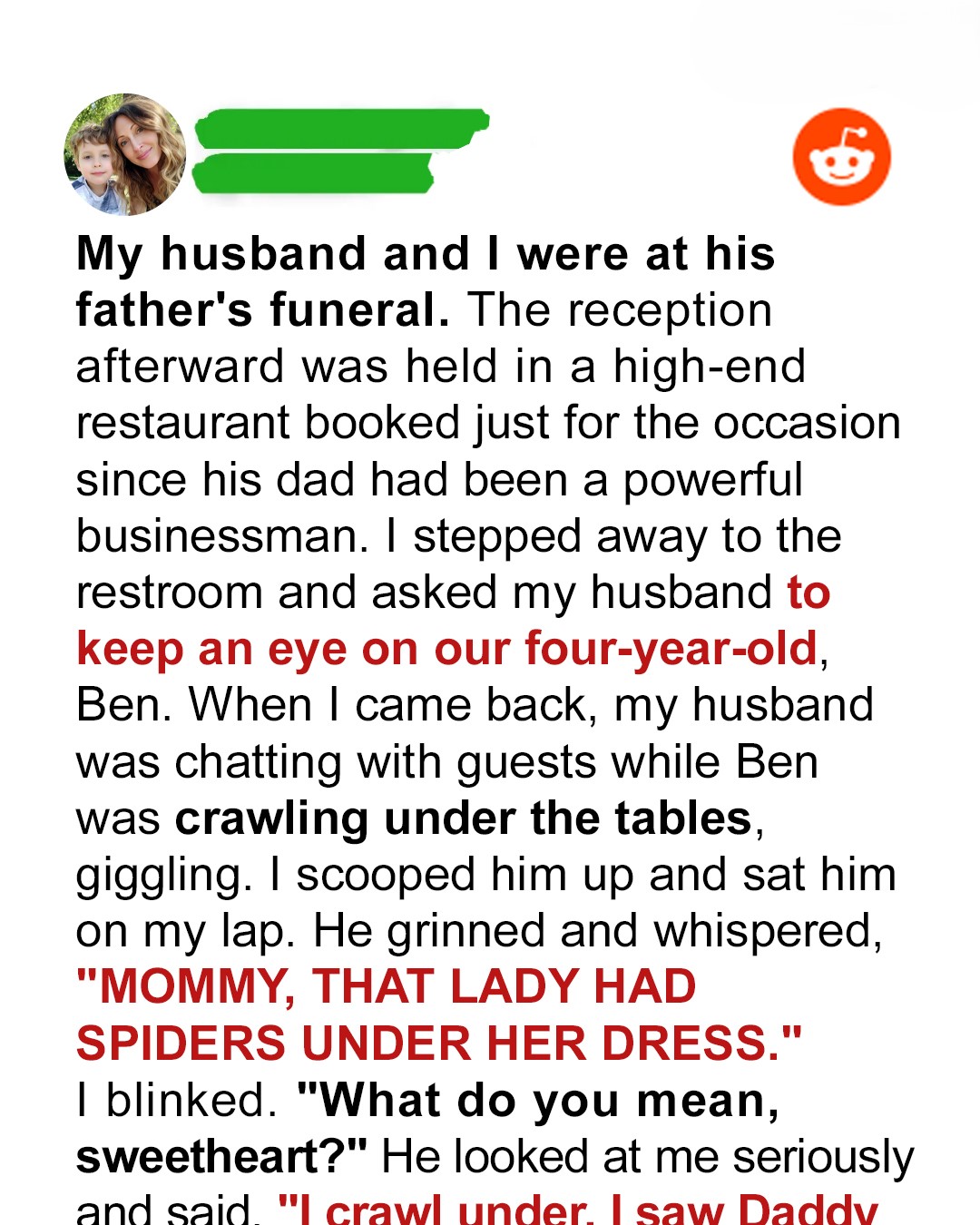 They say children see the world without filters. Ben saw the truth that day under the table at the funeral. And though it broke my heart, it also set me free.