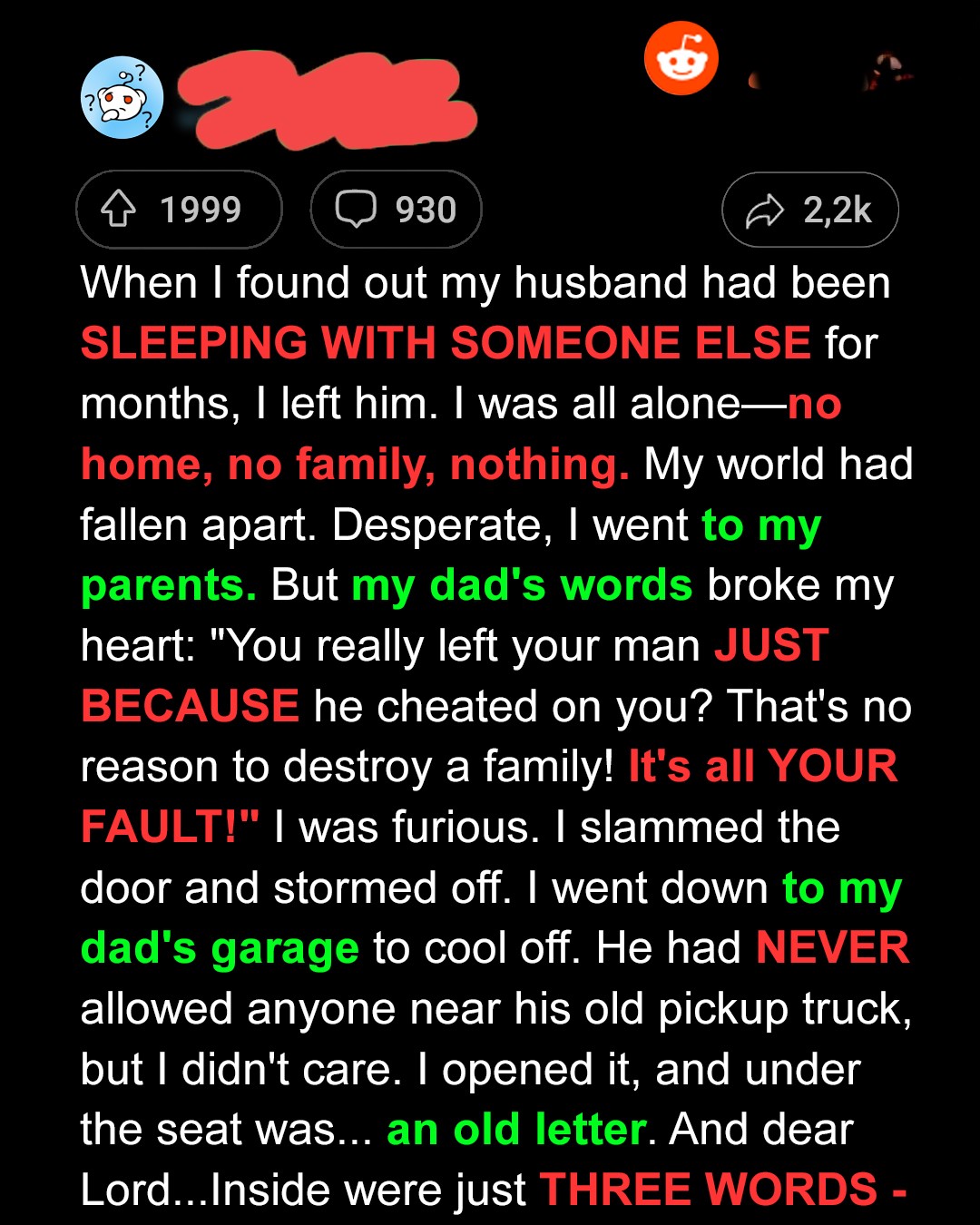 “You had an affair,” I said. “You cheated on Mom.”