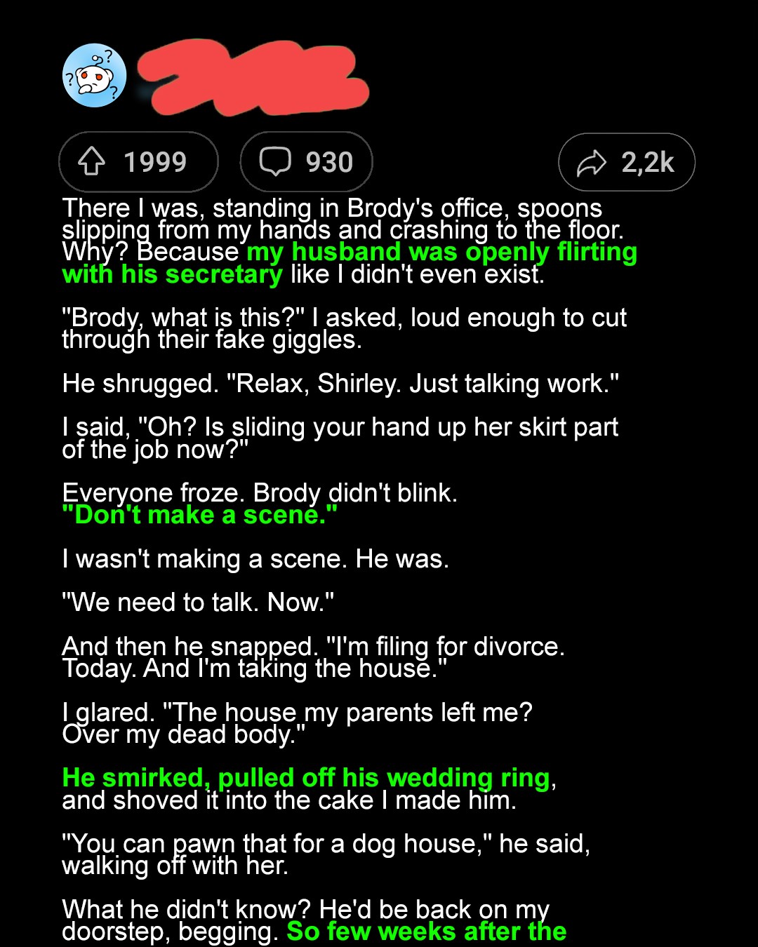 “Please, Shirley. I just… I need comfort,” he whined, reaching for her in a clumsy attempt at affection. “I’ve missed you so much, baby. Williams fired me.”