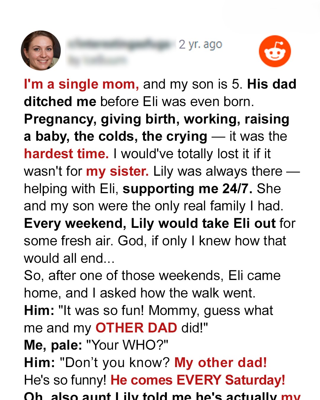 When my five-year-old came home raving about something he did with his “other dad,” I laughed—until I realized he wasn’t pretending. And when I found out my sister was in on it, my world cracked wide open. I had to find out who this man was… and why she hid him from me.There are two things I’ve always known for sure: I love my son more than air, and my sister Lily was born with a heart too big for her chest.Lily has always been that way. Soft in her voice, loud in her love.After Eli was born, when I was still healing and everything smelled like baby lotion and exhaustion, it was Lily who showed up at 2 a.m. with hot soup in a thermos and her sleeves rolled up.She didn’t say much—just walked into the nursery like it was her own and scooped up my crying baby before I could wipe the tears off my own face.