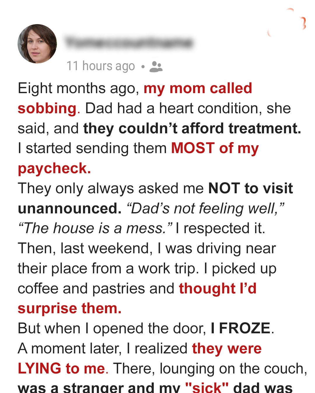 I Gave My Parents My Salary for 7 Months Believing They Were Sick — One Surprise Visit Changed Everything