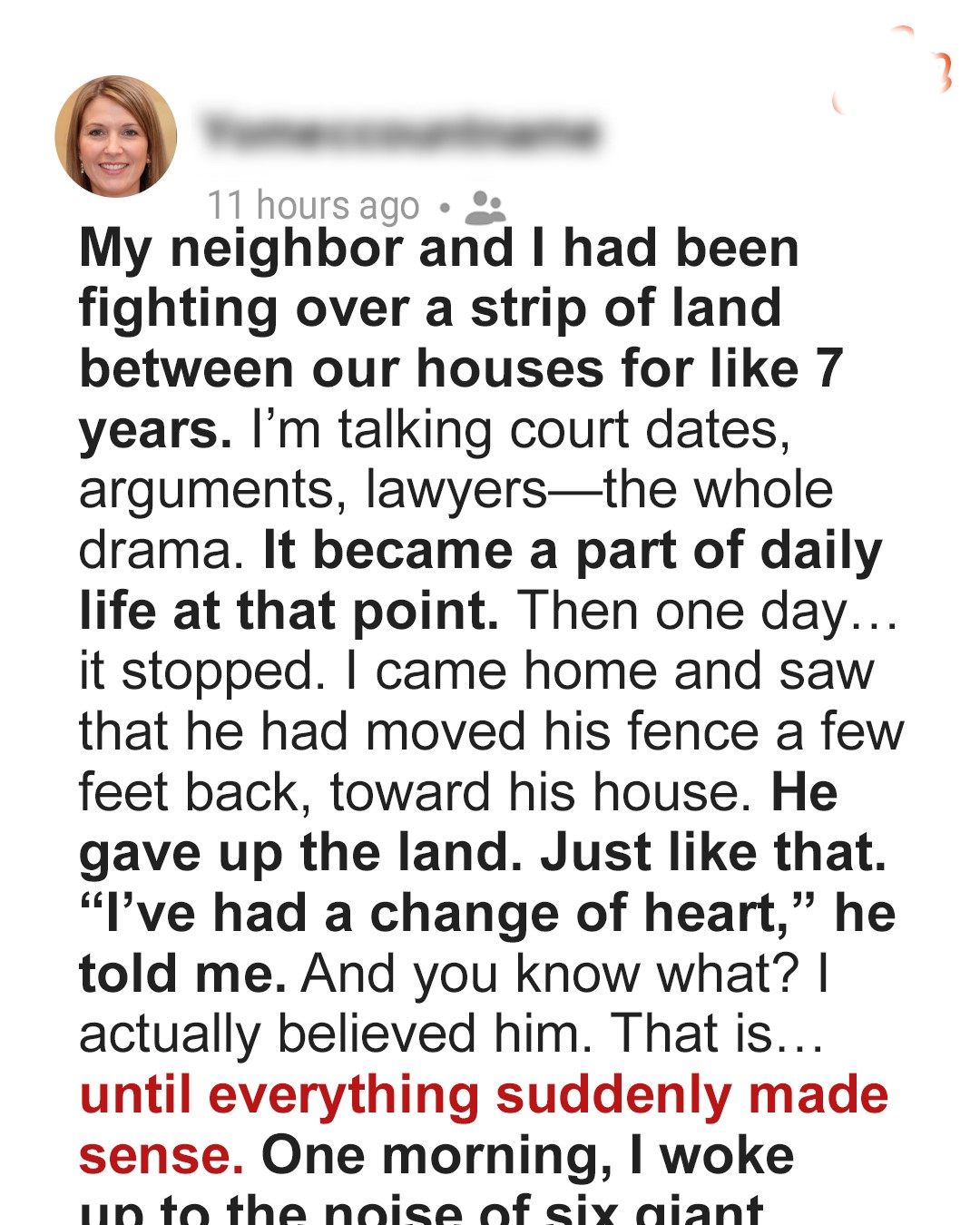Carl had never been the kind to back down. For seven years, every inch of that land was a battle. So when he smiled and said he’d “had a change of heart,” I didn’t know what to think. People don’t just change overnight. Not Carl. Something didn’t feel right.