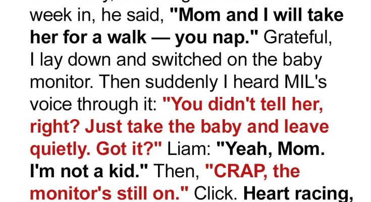 When Suzanne’s husband offered to take their newborn for a walk with his visiting mother, she thought he was just giving her a break. But minutes later, a conversation she was never meant to hear crackled through the baby monitor, and what she overheard shattered her trust.We had dreamed of this moment for years. After countless heartbreaks, my husband and I finally welcomed our daughter, our tiny miracle.Those early days were a blur of exhaustion and wonder.