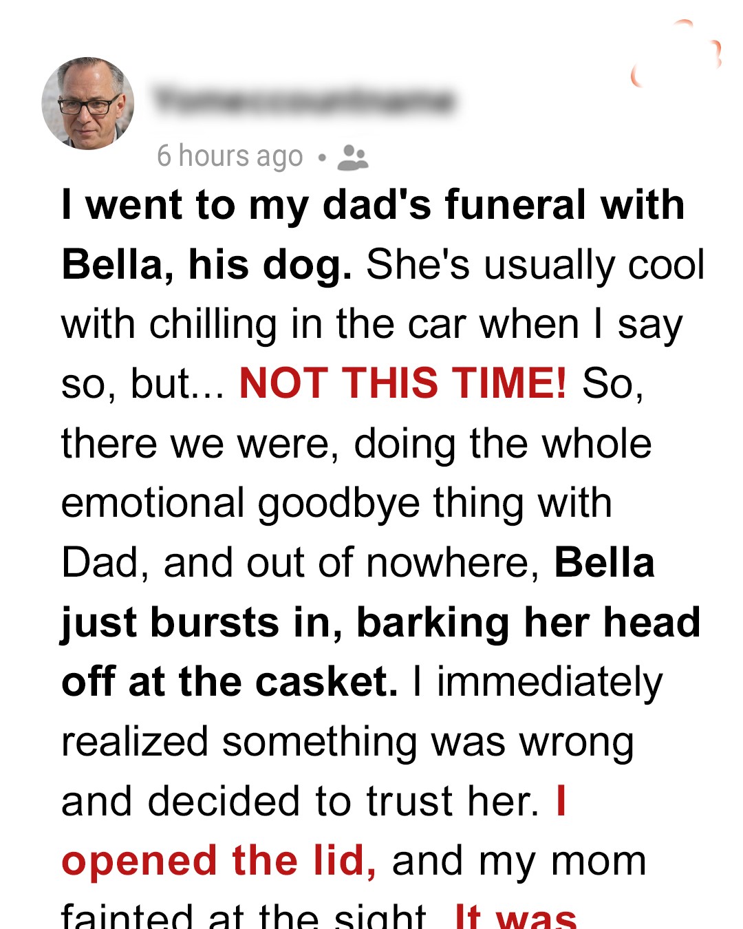 Just as the mass ended and mourners rose to sing the final hymn, Bella’s bark echoed through the church. She jumped on the casket, knocking the flower arrangement to the floor, and began barking loudly.
