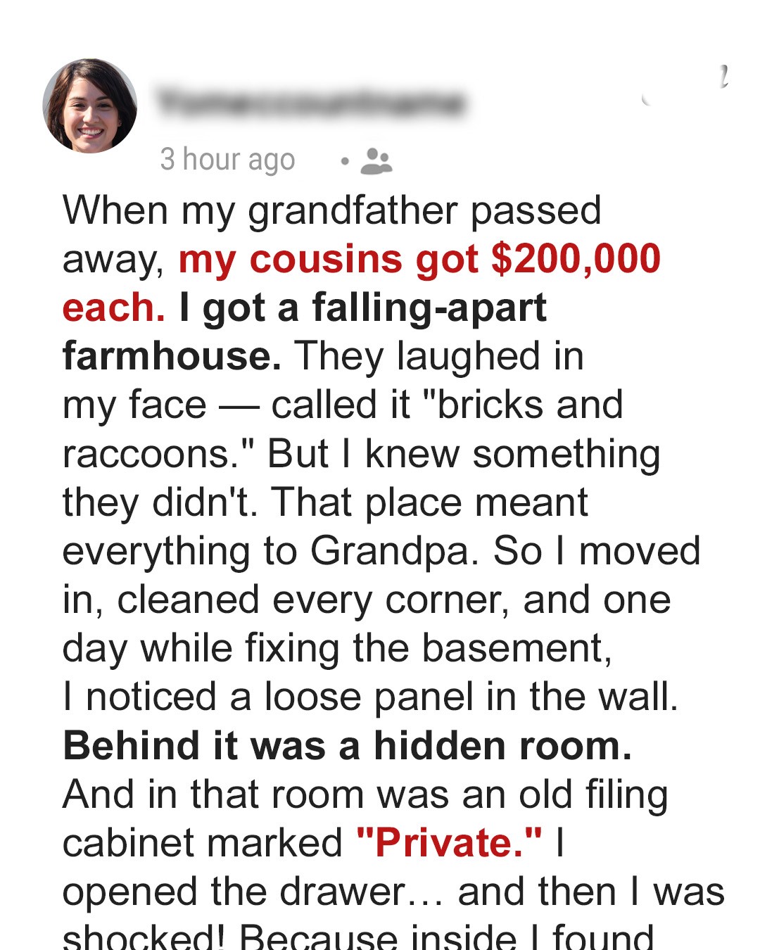 Everyone thought I got the short end of the stick when my grandfather died and left me nothing significant. But what they didn’t know was that what he gave me would one day make me the one they’d all come crawling to.When my grandfather passed away, I was 20, the youngest of eight grandchildren. Unlike the others, I never gave a second thought to his money. I just loved being around him, but little did I know that my love for him would one day pay off.