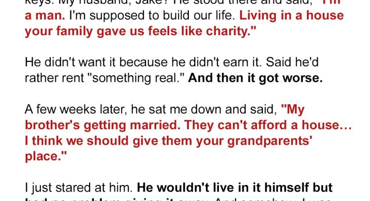 When my grandparents gave us the most unexpected wedding gift, I expected my husband to be as grateful as I was, but he wasn’t. Instead, he got it into his head that the magnificent present somehow emasculated him, and to get him back on track, I had to take drastic measures.I never thought pride could burn a hole so deep that it swallows gratitude entirely, but my husband proved it could. We’ll call him Jake. We’d been married for just under a year and renting a two-bedroom apartment in the suburbs when fate dealt us a good hand, which my husband looked down upon.