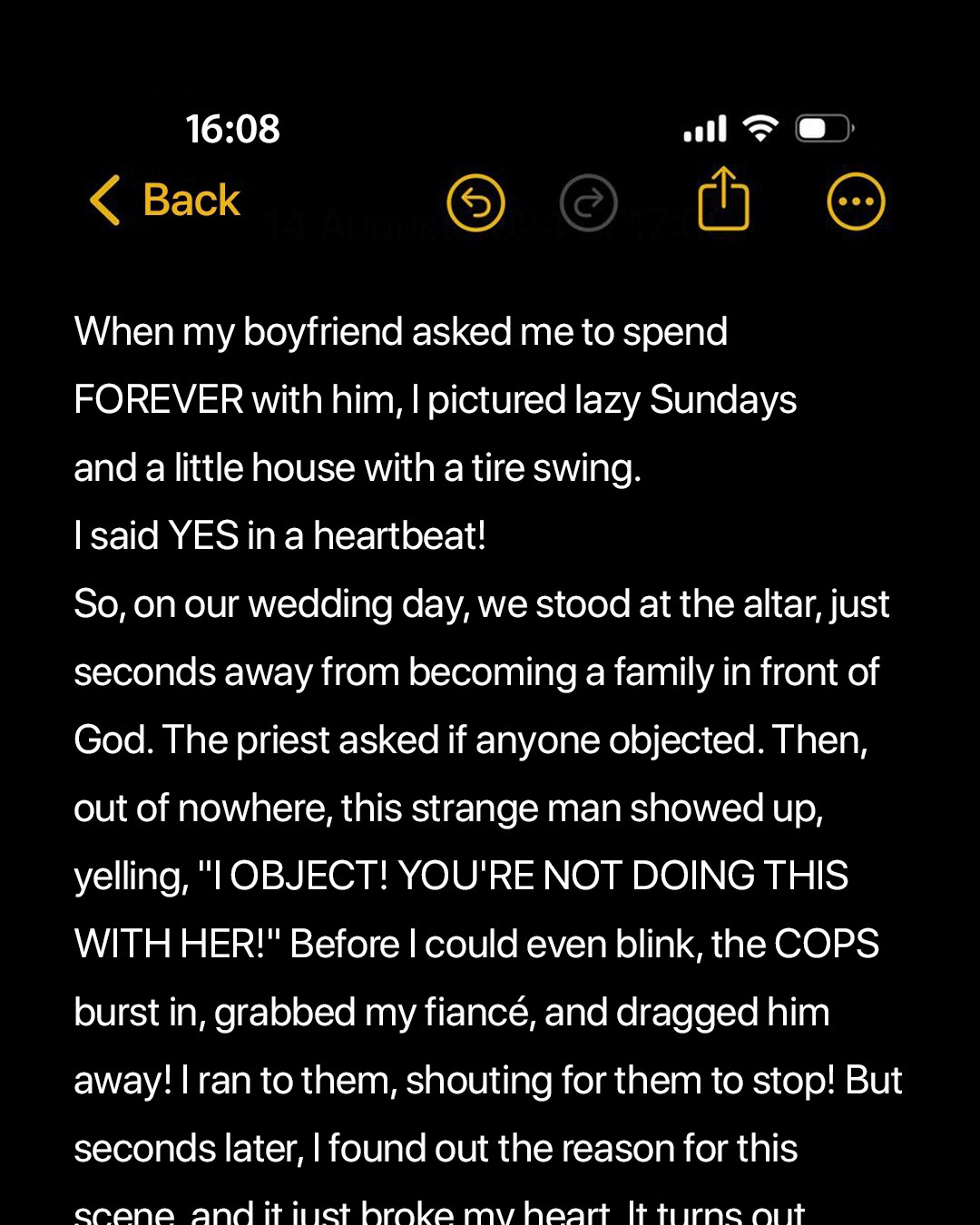 Then, the man who had canceled her wedding walked toward her. “I’m so sorry for what you are feeling right now,” he said. “The police arrested Myron because he was accused of repeated fraud.”