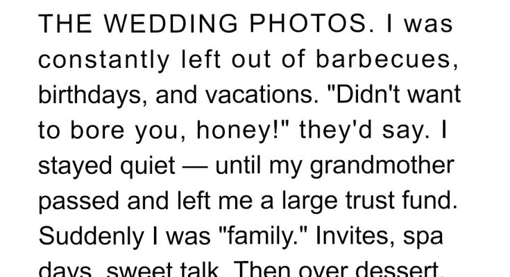 “Tell you what,” I said, voice calm. “Why don’t you first show me all the family photos I’m in from the last five years — you know, before I got the inheritance? Let’s count the parties I was invited to. The family trips I joined. If we get to ten, maybe I’ll think about it.”