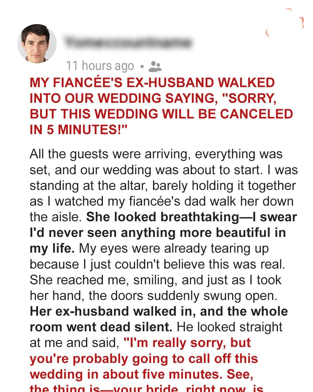 My Fiancée’s Ex-Husband Walked into Our Wedding Saying, ‘Sorry, but This Wedding Will Be Canceled in 5 Minutes!’
